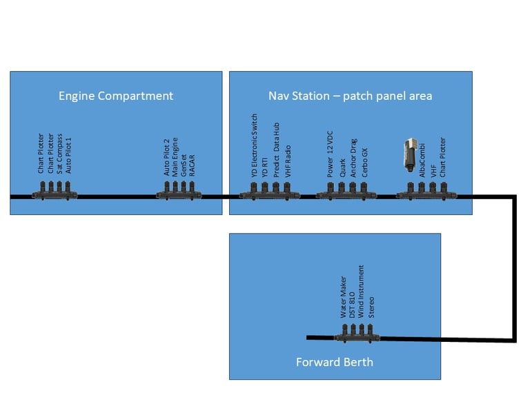 We will have CAT 5 run to the primary devices (Cerbo GX, Yacht Devices LAN bridge, Ship's PC)