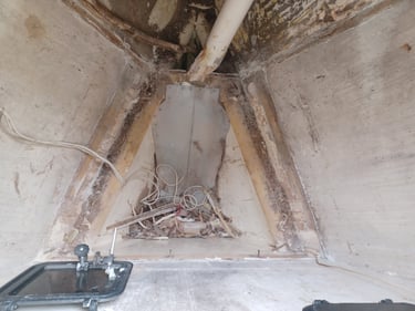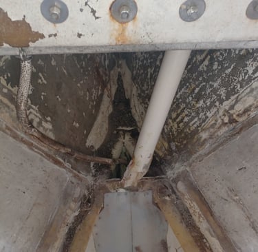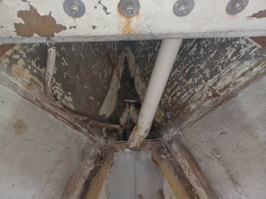 The air vent for the main engine exhaust is also damaged and has been leaking and will need to be replaced.