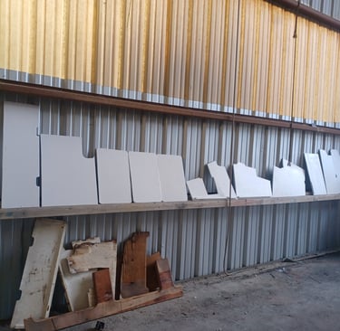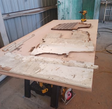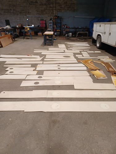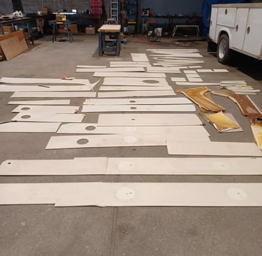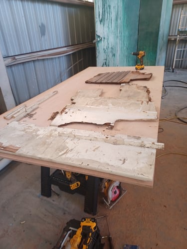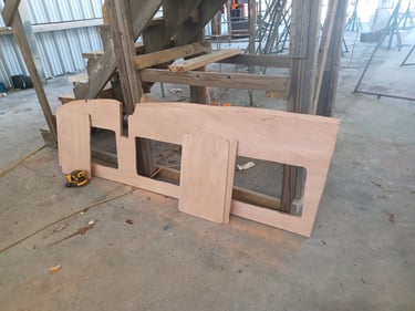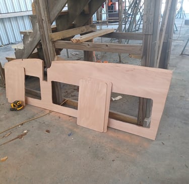 2 Jul - The replacement plywood for backing the headliner is mostly cut.