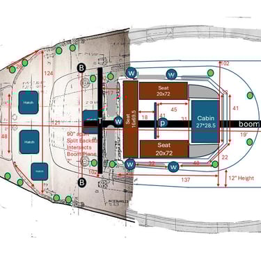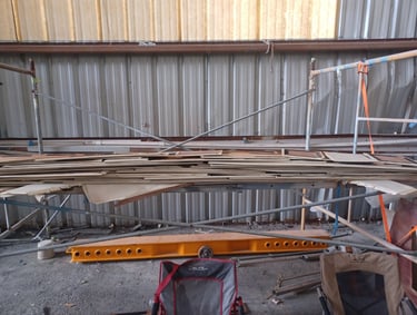 10 Jun - rebuild plan is taking shape - cut plan for new plywood is settled and vinyl and foam is at the sail loft. Ready to order replacement plywood.