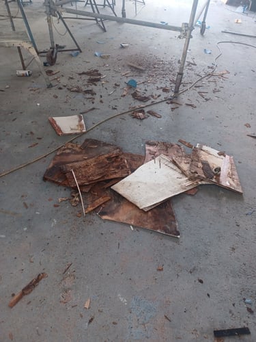 The termites were unknown to all parties at the time of the sale. The fumigation and tenting cost $4K but did an effective job of killing all the bugs (termites, roaches, etc) inside the boat. As we got into digging through the guts of the boat, we were able to determine the extent of the termite damage. The biggest issues where in the sail/ chain locker where they had consumed most of the wood present. The whole area will need to be rebuilt. So far we have cut out the primary floor and support as well as the partial bulkhead between the sail locker and the chain locker.