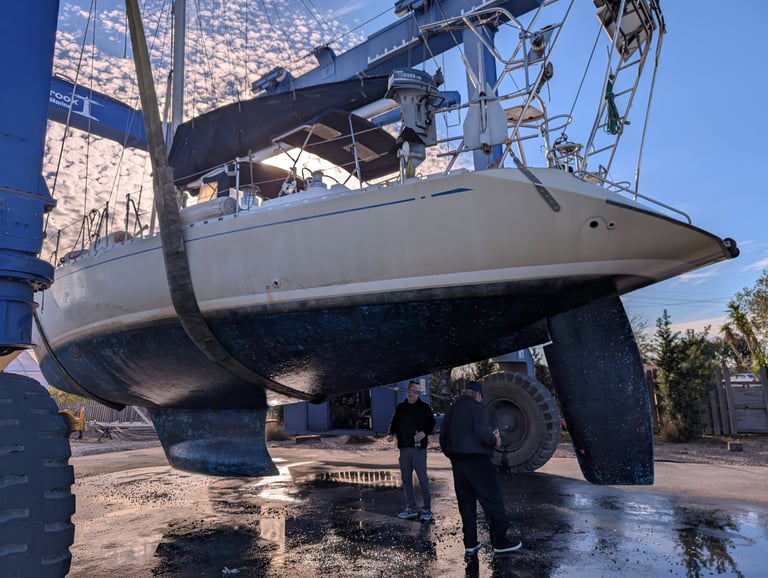 We have been eyeing this boat for about 2 months prior to finally connecting all the dots. We reached a signed contract on 15 Feb 2025. We have requested a mechanical inspection, but no traditional survey. We know we are going to be replacing most of the items the surveyor would be alerting on and we don't want to deal withe expense of a hull inspection given that she's getting hauled out upon arrival in Ft Pierce, FL where we will do the refit. We plan to strip the hull, remediate anything we find and recoat her from scratch.