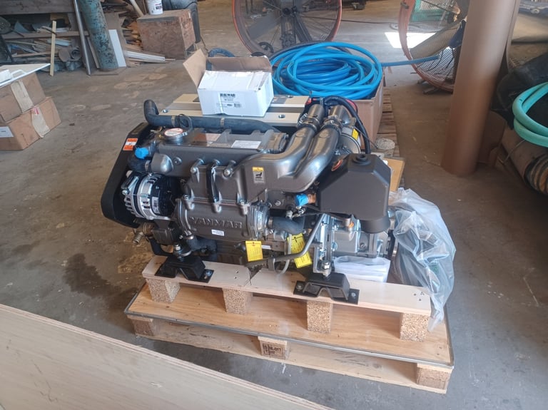 Engine. The engine is now on site. The original picture we were sent, was likely not our motor. We have serious issues with the original mechanic. However, after returning from our summer break, we found the new motor in the mechanic's shop and we confirmed it was ours and promptly removed it and brought it to the yard. Our relationship with the original mechanic has now reached legal action, as we are out about $10K in promised goods that have not been delivered.