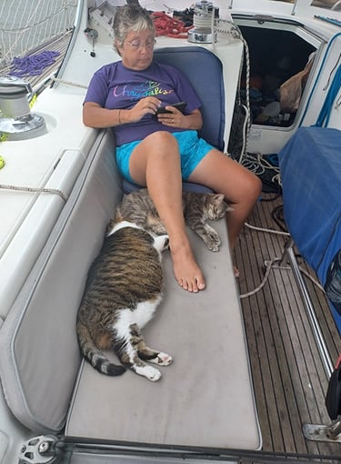 We started with 2 rescue cats but they are now gone after living long and full lives. Gabby died peacefully in Jan 2023 on the boat, and Loki developed kidney issues in Nov and 2024 and joined Gabby once it became clear she was not going to get better.