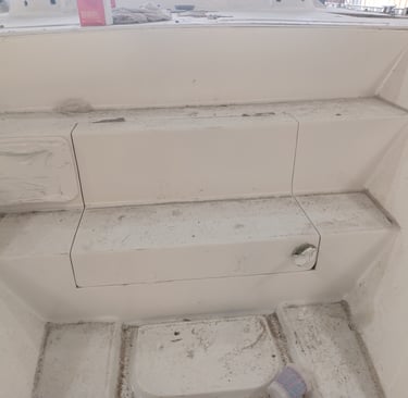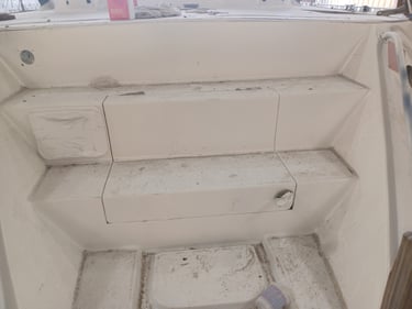 We discovered Termites our first day in the yard as we emptied out compartments - especially the sail locker. We will be replacing the compromised pieces of plywood: