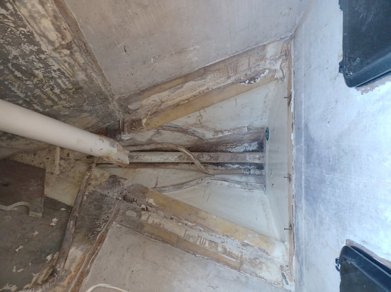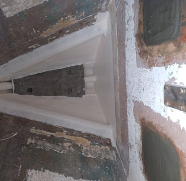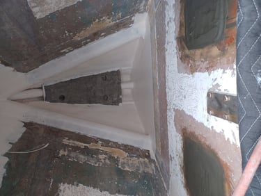 Convert bulkhead between forward berths and locker area to be water tight - (Remove hatches, remove drains at base, seal up) - discovered more rot at the base of the bulkhead - this appears to be an area that was added by a previous owner and the damage had not migrated into the primary bulkhead structure.